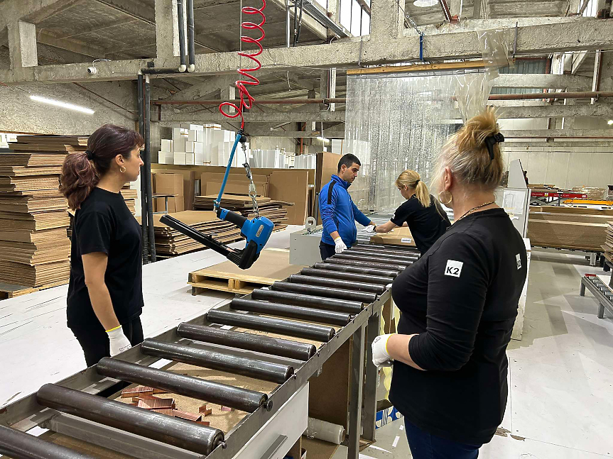 В момента в К2 работят малко над 100 човека, а от фабриката излизат 6-7 тира стока всяка седмица, или по 1 на ден.