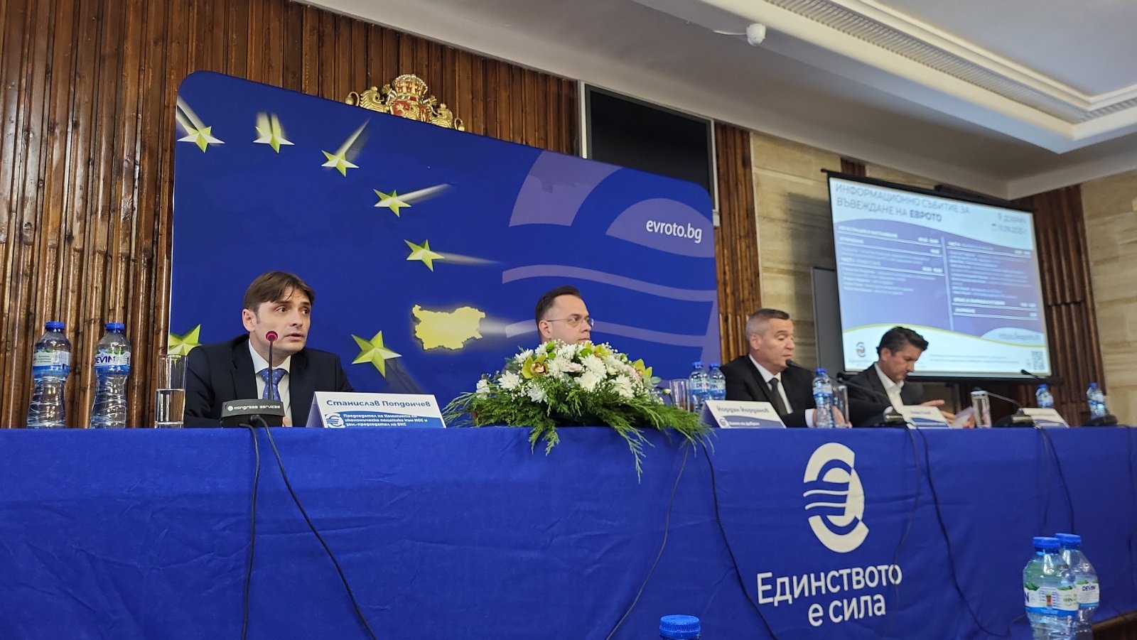 „Какви ли митове и легенди не сме чували – ще ни вземат 40-те милиарда валутни резерви, ще плащаме дълговете на Франция и Италия, ще променят курса в последния момент… Единственият начин да се преборим със страховете, е познанието. Да се научим да разпознаваме и да се доверяваме на истината, на фактите, и на хората и институциите, които са поели нелеката задача, да завършат европейската интеграция на България“, каза още г-н Попдончев и подчерта, че целта на срещата е именно да се отговори на всички тези въпроси.